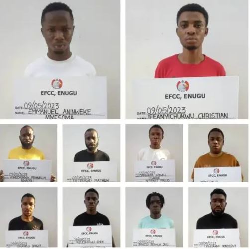 The fraudsters, Chisom Simon Ikenyiri, Ugwuanyi Innocent, Ifeanyichukwu Nnaji Christian, Matthew Izuchukwu Ofoha, Chimamkpa Godwill Osakwe, Uwandu Bright, Uchechukwu Franklin Nwaodu, Emmanuel Aniweke Mmesoma, Edeh Kelechukwu Bethel and Onu Chinedu Joshua, were convicted on separate charges bordering on bordering on fraudulent impersonation.