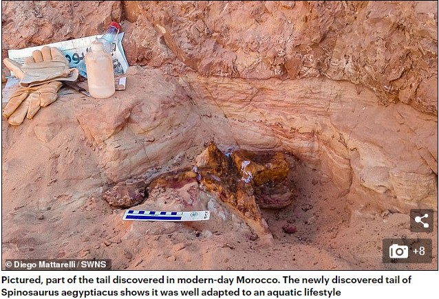 A fossilised tail of a juvenile of the species, which belongs to the therepod group, the same as the T-rex, was found in modern-day Morocco.