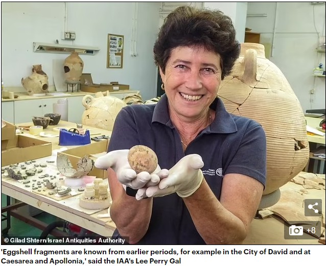 ‘Eggshell fragments are known from earlier periods, for example in the City of David and at Caesarea and Apollonia,’ the IAA’s Lee Perry Gal, a leading expert on poultry in the ancient world, said in a statement.