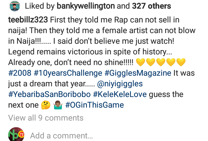 Teebillz also joins the latest trend of 10years challenge as he shares adorable throwback photo.
