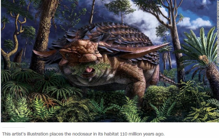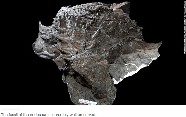 The nodosaur, known as Borealopelta markmitchelli, was found in 2011 during mining operations north of Fort McMurray in Alberta, Canada.