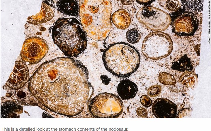 “The finding of the actual preserved stomach contents from a dinosaur is extraordinarily rare, and this stomach recovered from the mummified nodosaur by the museum team is by far the best-preserved dinosaur stomach ever found to date,” said Jim Basinger, study coauthor and University of Saskatchewan geologist, in a statement.