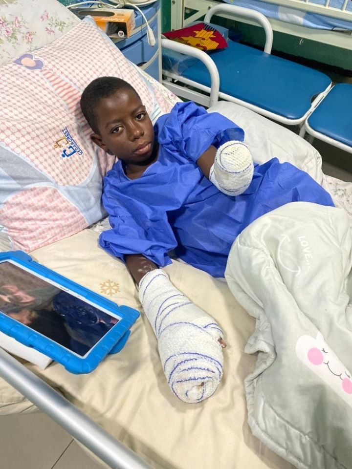 Efforts are underway to fix a prosthetic hand for him.
