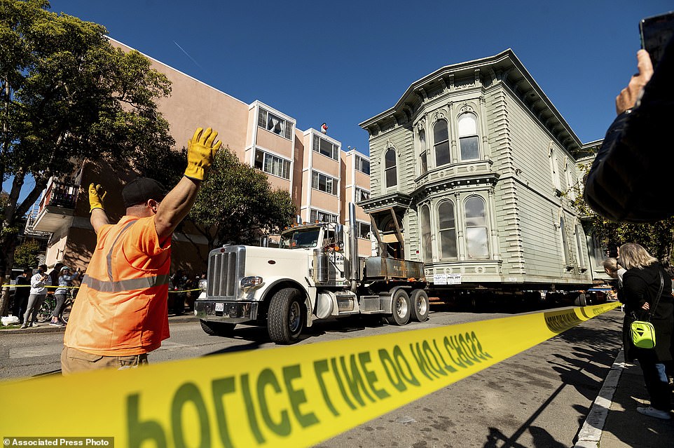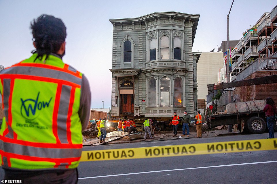 A San Francisco broker paid $400,000 to uproot his entire two-story Victorian house and move it to a new plot six blocks away in downtown San Francisco.