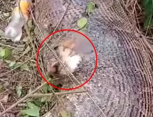 “However, after the cow died inside the snake, its body became swollen and stretched the snake’s stomach even more. It was such a scary scene.”