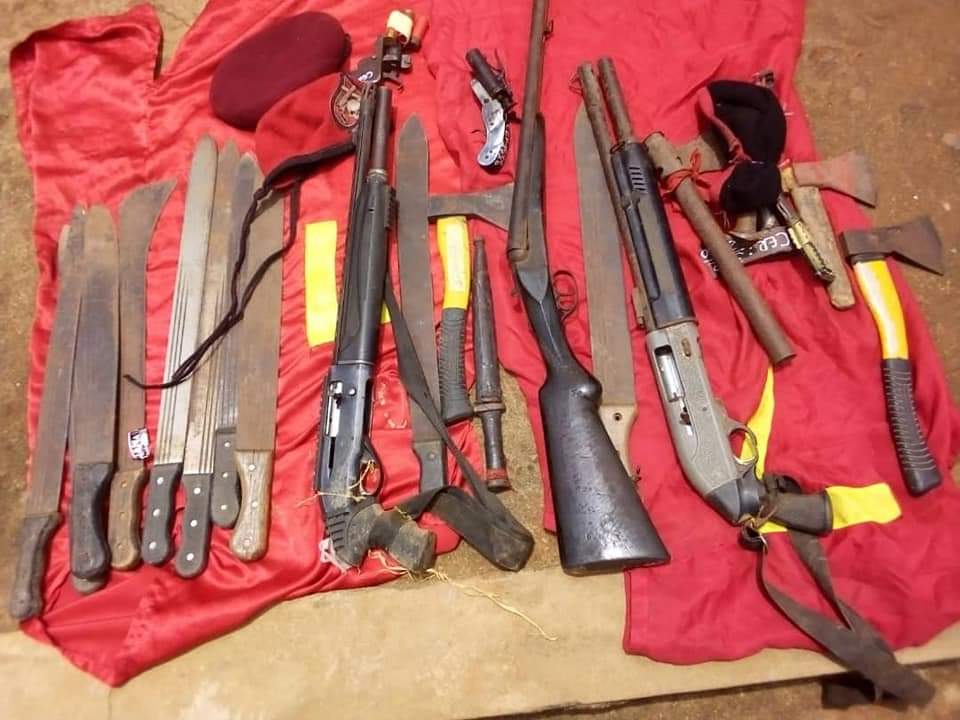 Meanwhile, exhibits recovered includes,Two(02) pump action ten (10) machetes , five (05)axes, two(02) daggers, three (03) barrettes, one double barrel gun, 02 locally made pistol and 03 live cartridges.