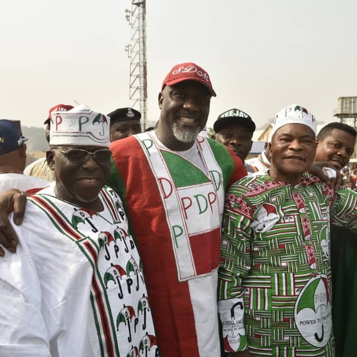 In the mood of campaign, Dino Malaye was pictured inna campaign clothes as he spotted with two former kogi Governors Ibrahim and Governor Wada as they both pledge their support for Dino malaye in Kogi state.