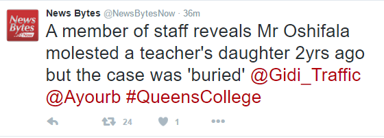 At Queen’s College,Yaba over accusation of sexual harassment by Teacher Oshifala.Appears true!