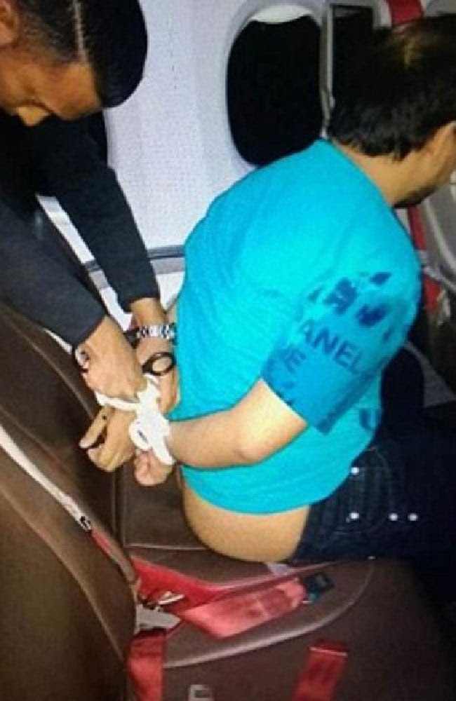 The cabin crew and passengers reportedly managed to subdue him and his hands were tied up with a piece of cloth for the rest of the flight.