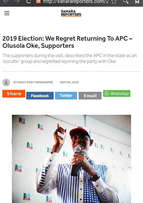 Oke led his supporters back to the APC early 2018 after losing the 2016 governorship poll on the AD platform.