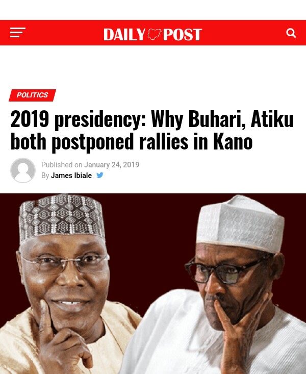“Waziri @atiku was supposed to hold his rally today, but postponed it till after @MBuhari rally on 27th.
