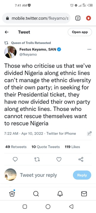 Those who criticise us that we’ve divided Nigeria along ethnic lines can’t manage the ethnic diversity of their own party; in seeking for their Presidential ticket, they have now divided their own party along ethnic lines. Those who cannot rescue themselves want to rescue Nigeria