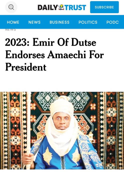 2023: Emir Of Dutse Endorses Amaechi For President