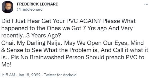 In a tweet shared on his handle, Leonard asked what happened to the votes people cast during the elections seven years ago and three years ago.