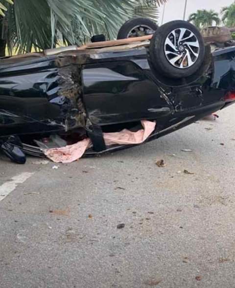 The accident occurred after his Honda Civic car skidded and hit a tree before it was overturned in front of Cyberjaya National School (SK).