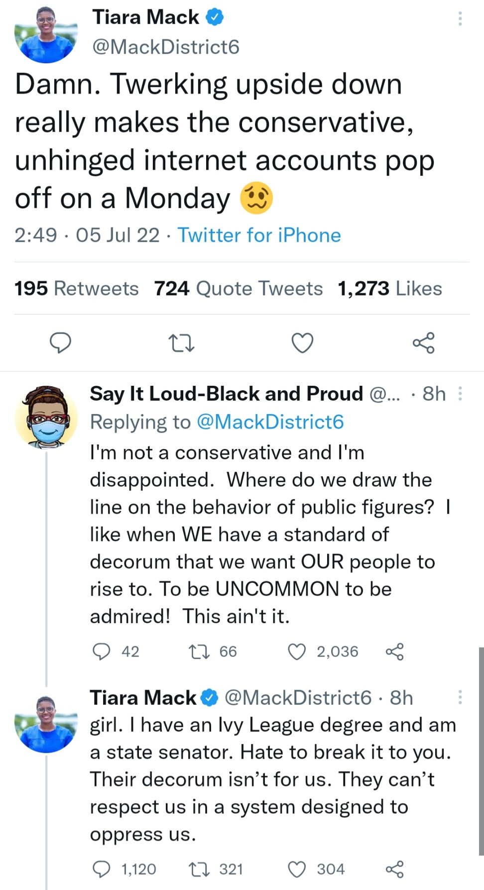 The Rhode Island State Senator, Tiara Mack however, didn’t take the attack and responded back.