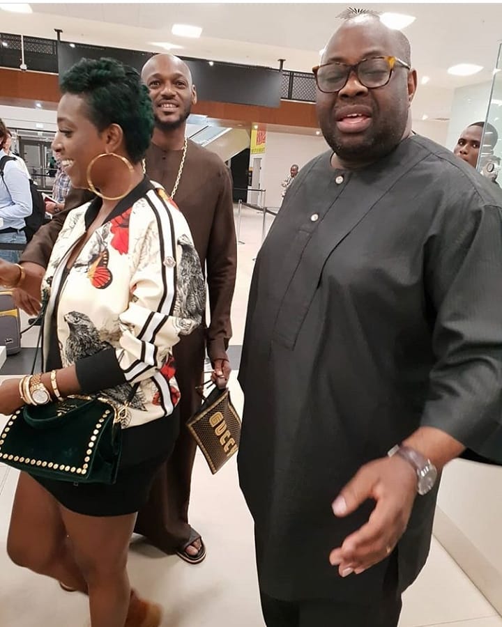 Ovation International Magazine Boss Dele Momodu was photographed with Legendary Musician Tuface Idibia and his actress wife Annie at the Kotoka international aiport in Accra,Ghana.