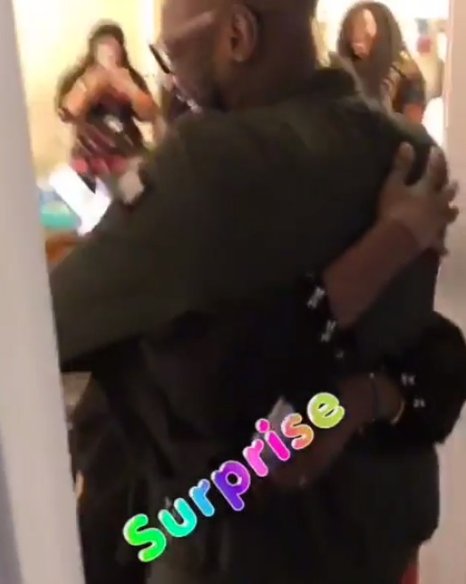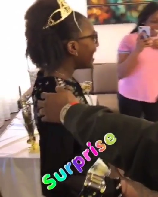 The proud dad surprised her as she celebrated with few friends and family in the U.S. where she lives with her mum, Pero.