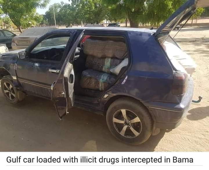 While Yakubu Kotri, impersonating as a military personnel was arrested on Wednesday, 29th December driving a gulf car loaded with Cannabis Sativa weighing 208 kilograms on his way to Bama, Borno state, another suspect, Salisu Mohammed who adorned the uniform of another security agency to traffic Tramadol to Bama was also nabbed by narcotic officers on patrol on the route same day.