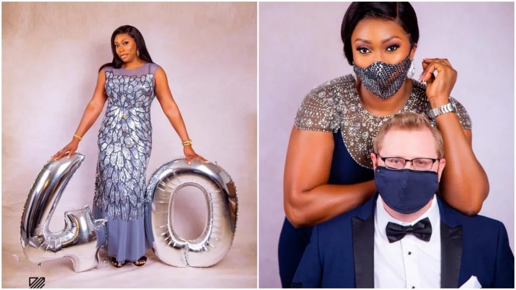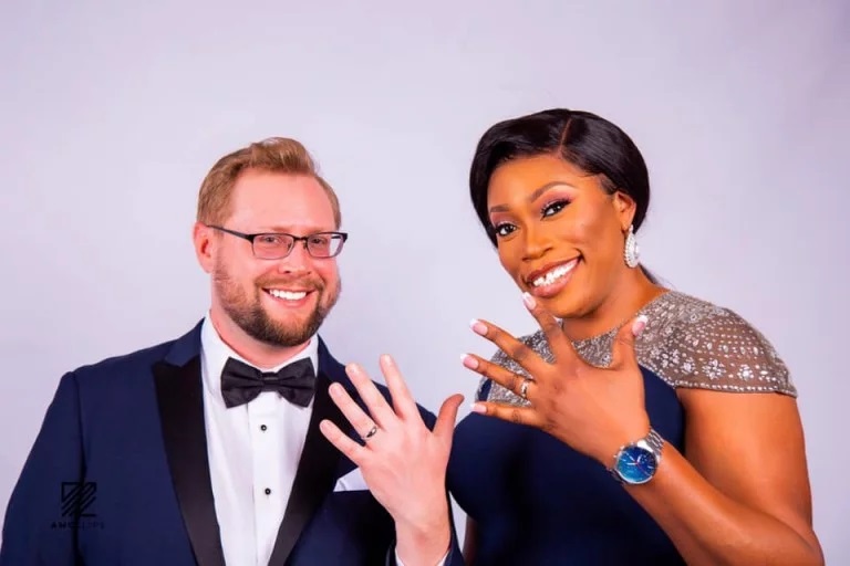 A Nigerian woman has been given double celebration after getting engaged to her white lover on her 40th birthday.
