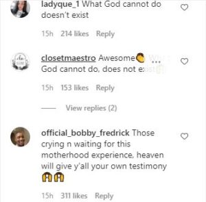 “Answered Prayer42 years of age. Cystic Fibroids.GOd said i’m not done yet.” See some reactions below: