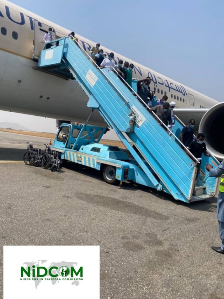 424 more Nigerians stranded in Saudi have arrived Abuja . They will proceed on the mandatory 14 days quarantine . We appeal to Nigerians to desist from illegal migration.
