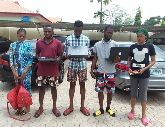They have been identified as Ibrahim Idris, Sadiq Idris, Martins Abeku, Blessing Nicolas and Esther Micheal. They were accused of creating fake FaceBook pages, and also using display pictures and names belonging to mostly foreigners to deceive unsuspecting victims mostly females of white nationality.