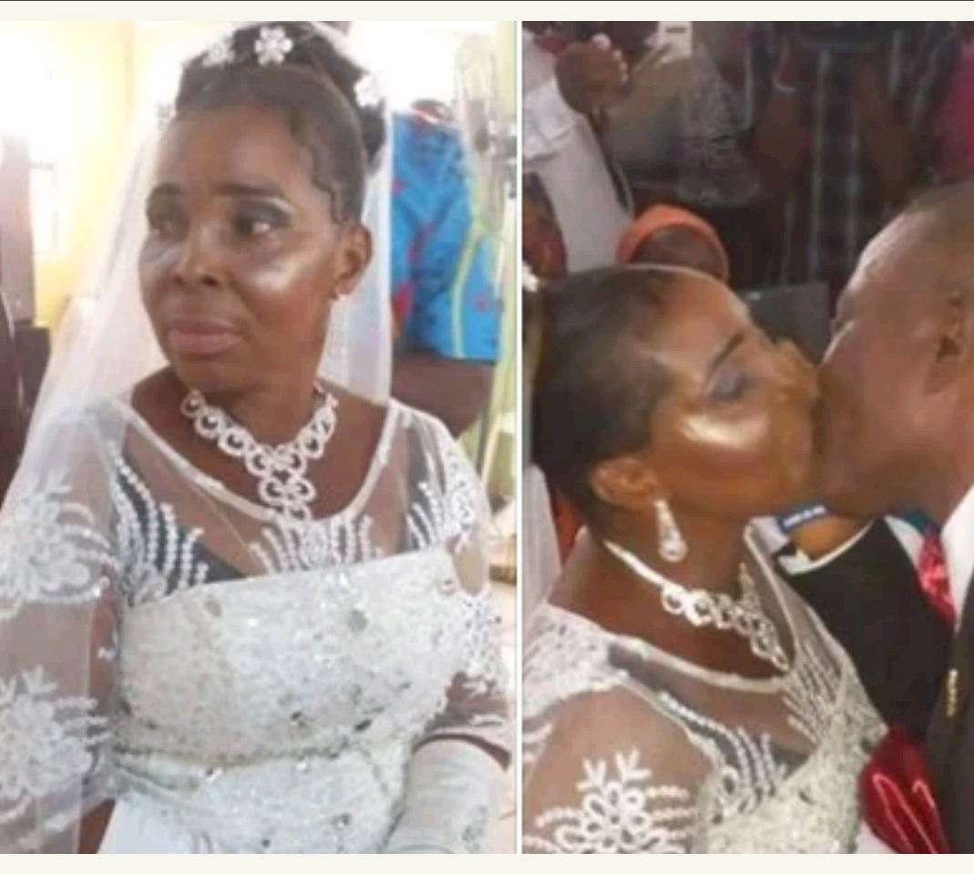 A Port Harcourt based-50-year old woman was overwhelmed with joy today as she wore a wedding gown for the first time in her life.