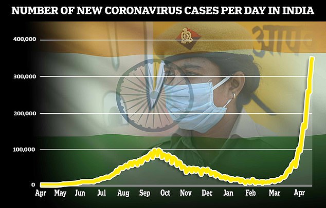 Meanwhile in India, the country’s healthcare system is collapsing under a devastating second wave of coronavirus that is killing more than 2,800 people a day in the nation that is home to 1.3 billion people.