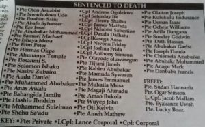 In 2014, the soldiers, who asked for better weapons to fight Boko Haram insurgency, were charged with mutiny and sentenced to death.