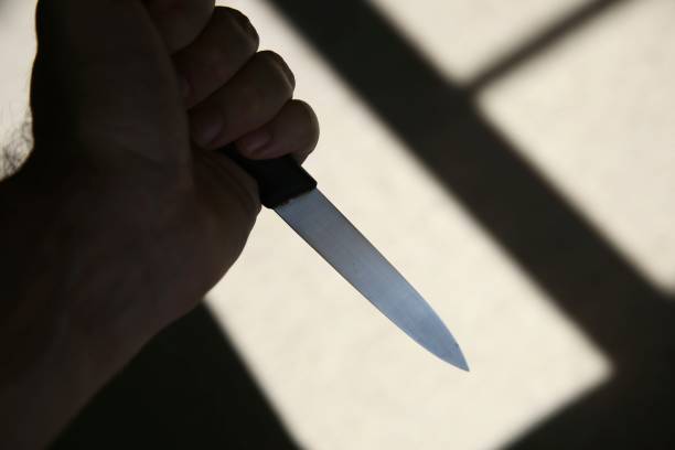 A hand holding a knife in shadow. This image can be used to represent stabbing or murder.