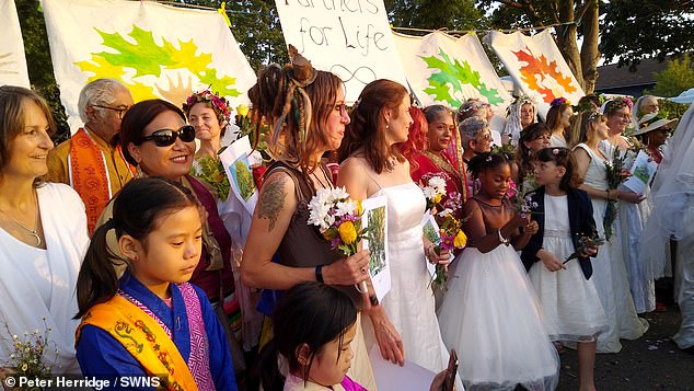 Suzan Hackett, one of the ‘brides’, explained to the BBC: ‘To get married to a tree is an absolute privilege.