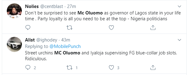 Nigerians have reacted to report of Tinubu’s daughter and Iyaloja-General, Folasade Tinubu-Ojo; and the Chairman of the National Union of Road Transport Workers in Lagos State, Musiliu Akinsanya aka MC Oluomo being part of the 20-member committee that will supervise the recruitment of 20,000 Lagos youths into Federal Government’s Special Public Works Programme.