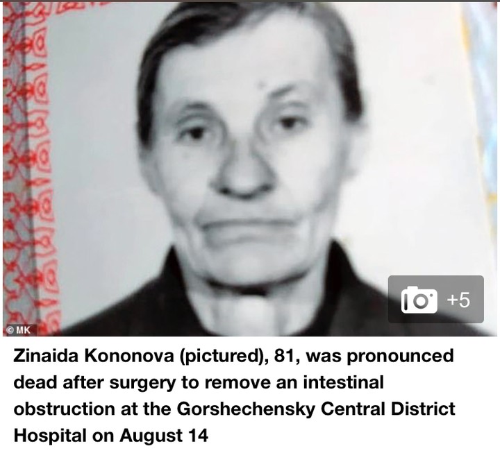 Zinaida Kononova, 81, was pronounced dead after surgery to remove an intestinal obstruction at the Gorshechensky Central District Hospital on August 14.