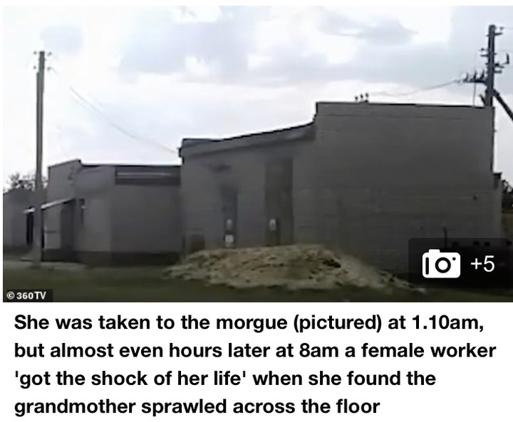 She was taken to the morgue at 1.10am, but almost seven hours later at 8am a female worker ‘got the shock of her life’ when she found the grandmother sprawled across the floor.