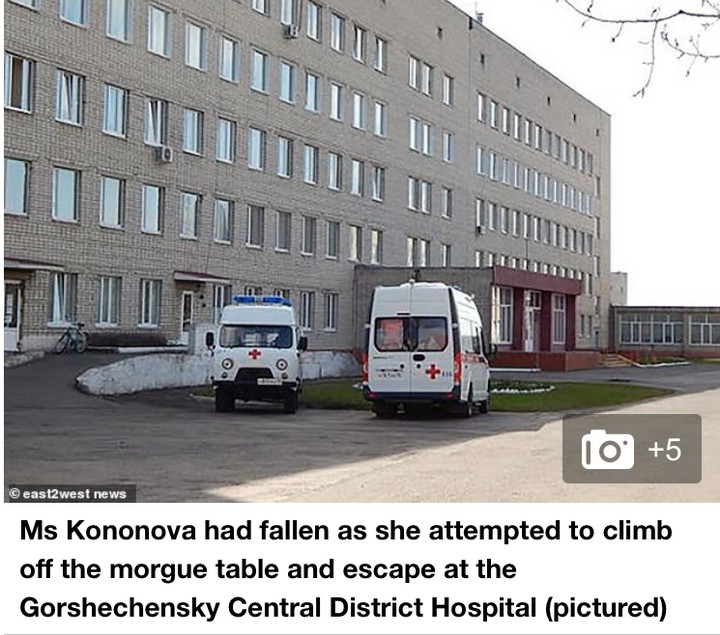 Ms Kononova had fallen as she attempted to climb off the morgue table and escape.