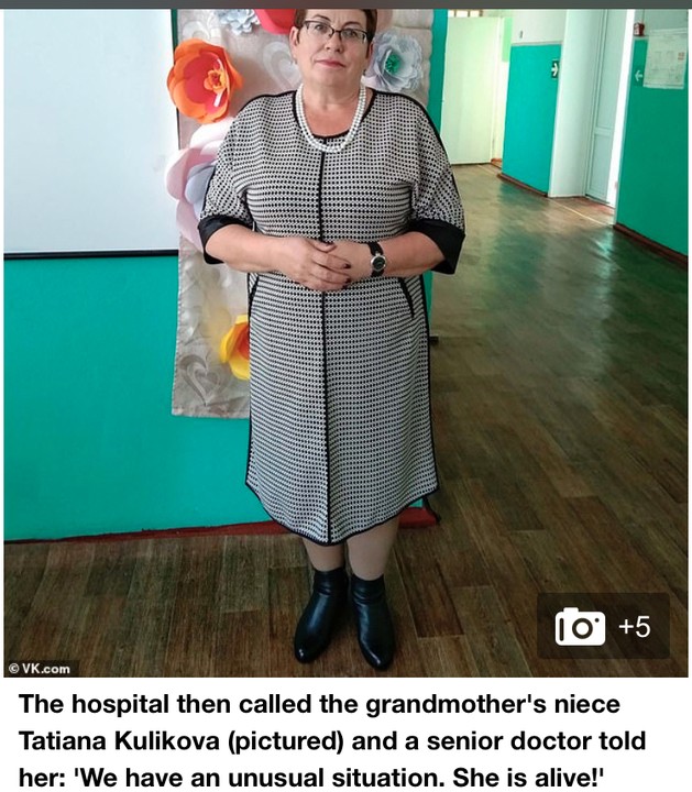The hospital called the grandmother’s niece Tatiana Kulikova and a senior doctor told her: ‘We have an unusual situation. She is alive!’