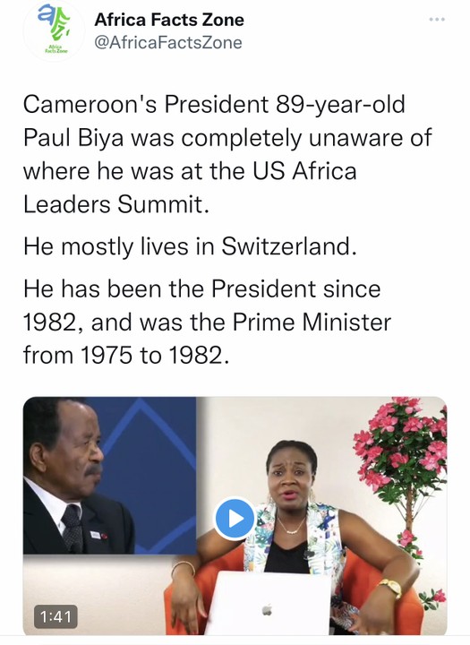But I hope this embarrassing video of moment that Paul Biya of Cameroun didn’t know where he was, at the recently concluded US-Africa Summit in Washington DC.