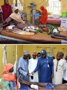 SEMA Executive Secretary while commiserating with victims and caregivers in Geidam General Hospital, conveyed Governor Buni’s condolence over the unfortunate incident and also assured survivors of free medical attention as directed by the Governor.