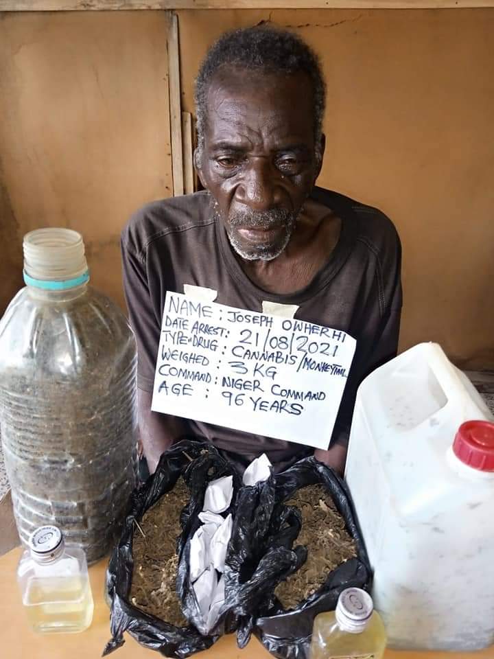 A 96-year-old retired soldier, Pa Joseph Owherhi has been arrested in Suleja area of Niger state by operatives of the National Drug Law Enforcement Agency, NDLEA for dealing in illicit drugs.