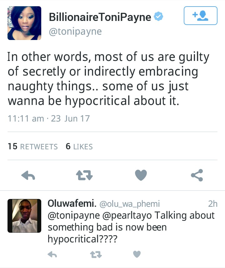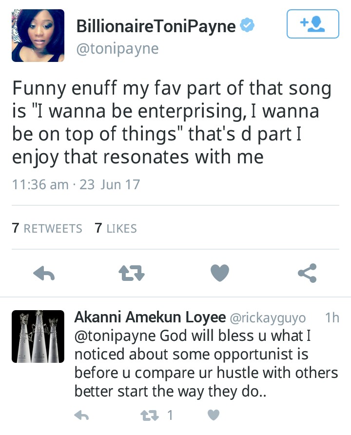 However, the criticisms on social media didn’t sit well with 9ice’s Ex-wife, Tonipayne who was seen hanging out with the singer few days ago. She expressed herself on twitter where she compared the song to songs by American rappers who glorify guns.