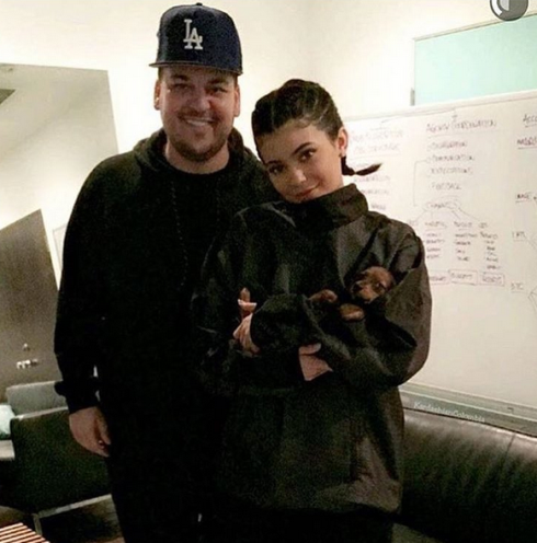 There were speculations that Kylie was mad at her big brother, Robert Kardashian, for dating her arch-enemy, Blac Chyna, whose baby daddy she’s currently dating. But this pic of the two of them was shared recently and they look cool with each other. Wait, maybe Chyna even took the pic…lol. More photos after the cut…
