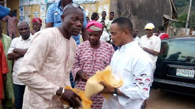 Segun Adekola representing Ekiti South Federal Constituency I at the National Assembly, distributed portions of rice and N500 cash to members of his constituency residing at Igbara Odo-Ekiti and Ikere-Ekiti on Sunday August 7th.