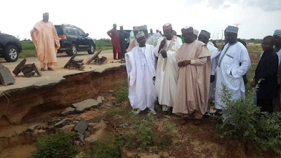 Sokoto State Governor Aminu Tambuwal, yesterday August 28th, inspected the erosion threatening Sokoto – Isa road. The Governor promised that immediate action shall be taken to fix the problem. More photos after the cut.