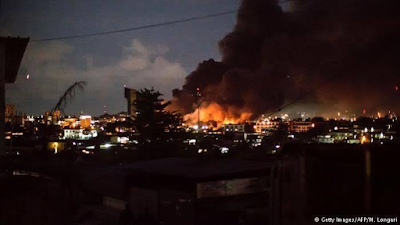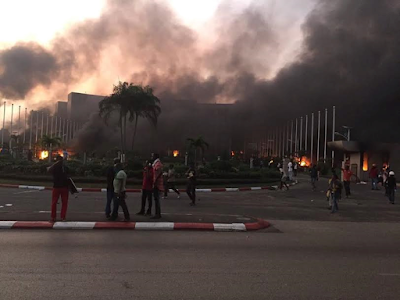 Gabon Parliament set on fire after President Ali Bongo was declared winner (see photos)
