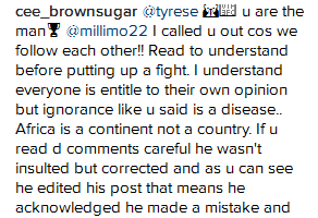 Tyrese Gibson is the latest celebrity to be reminded that Africa isn’t a homogenous entity but rather a diverse continent of more than 50 countries. The American singer and actor, yesterday wrote a post about Facebook CEO Mark Zuckerberg ‘popping into Africa’ where he hung out, jogged & connected with the amazing ‘people of Africa’. However, some Nigerians, including Nollywood actress Chioma Akpota, didn’t take lightly the fact that he used the word Africa instead of Nigeria. Following the criticisms and bashing, he edited his post and added Nigeria.