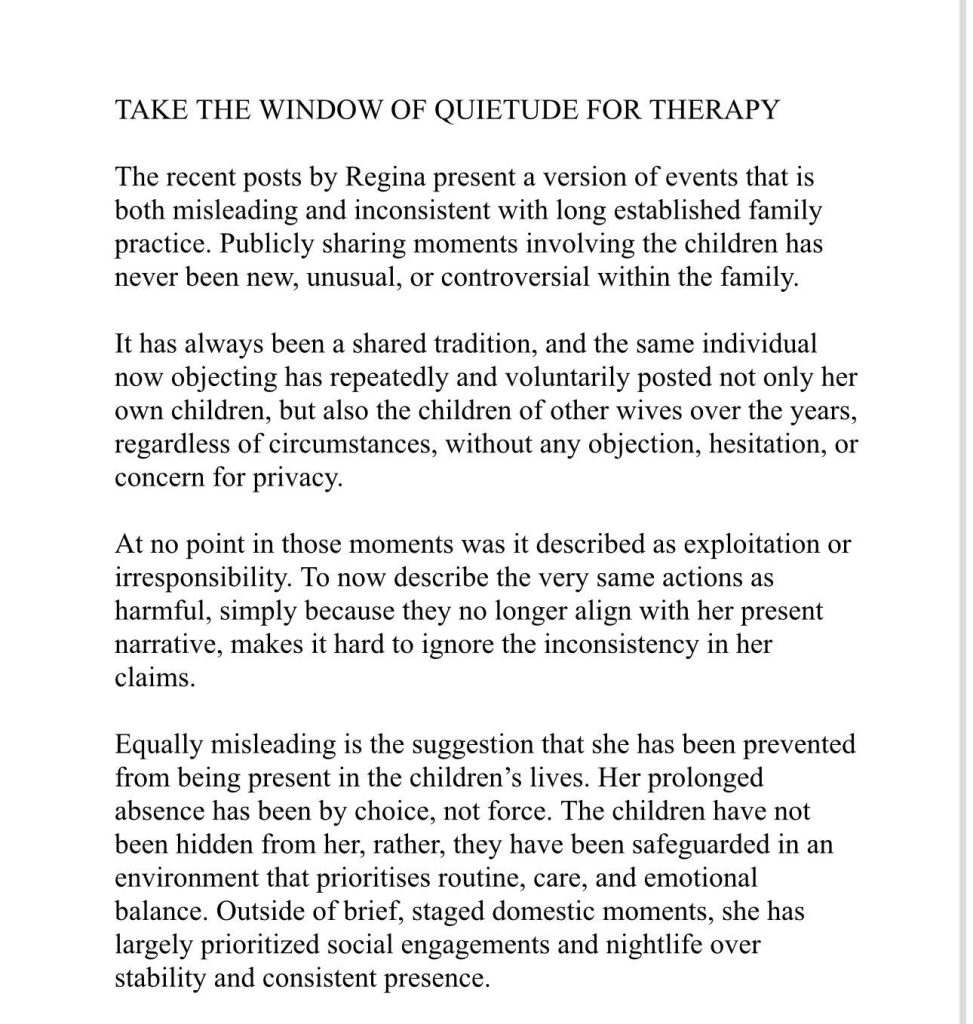In a statement released from his media aide this afternoon and posted on his social media, Nwoko denied claims he has prevented Regina from seeing their kids. He pointed out that a court has ruled that she must undergo drug rehabilitation and be assessed by the Abuja Social Welfare Department before access can be restored to Munir (5) and Khalifa. He also reacted to Regina frowning at him for posting photos of their kids on social media. He argued that Regina has in the past also posted videos and photos of their kids on social media and wonders why she is against it now.