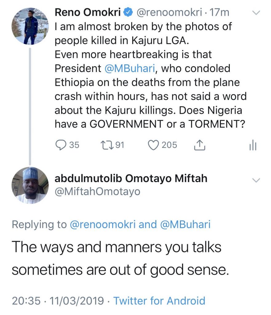 “Dear @MiftahOmotayo, You meant to insult me, but your grammar limitations has made you write something that is actually praising me. What you are saying is that my actions are sensible. You see why you should go to one of those 165 almajiri schools GEJ graciously built for you?”