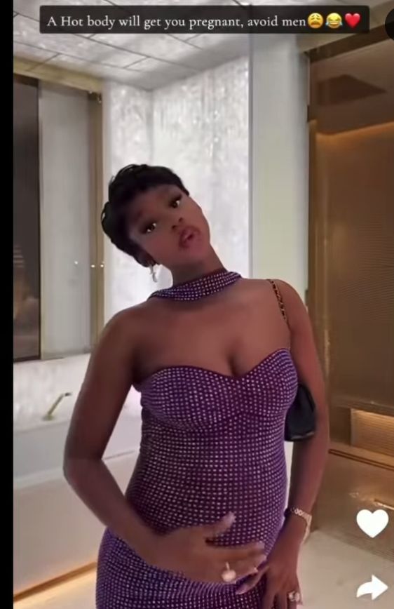 The social media influencer posted on her Instagram stories: “A hot body will get you pregnant, avoid men,” shortly after confirming the news.