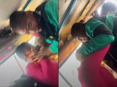 Drama as fight breaks out inside a crowded bus after a lady reportedly saw her boyfriend’s photo on another lady’s phone.